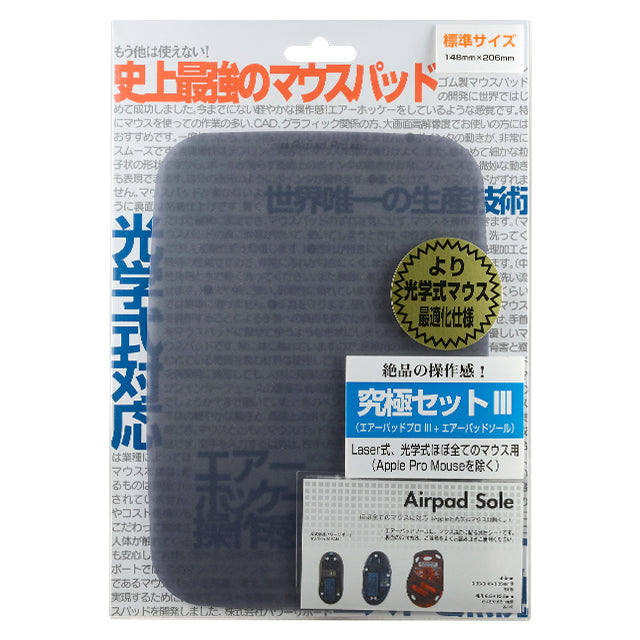 圧倒的な操作感を実現するエアーパッドにエアーパッドソール(マウス用滑性シート)が付属した究極セットです。
