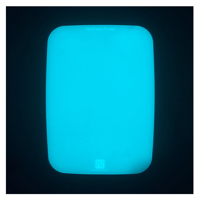 通常は半透明のホワイトですが、暗い場所では淡いブルーに発光します。