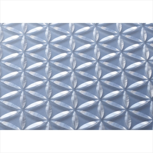 麻の葉を均等に正六角形に並べ、隣り合い重なり合う葉が時に星形を、時に円を描く不思議な文様。老舗「江戸切子の店 華硝」のオリジナル柄です。