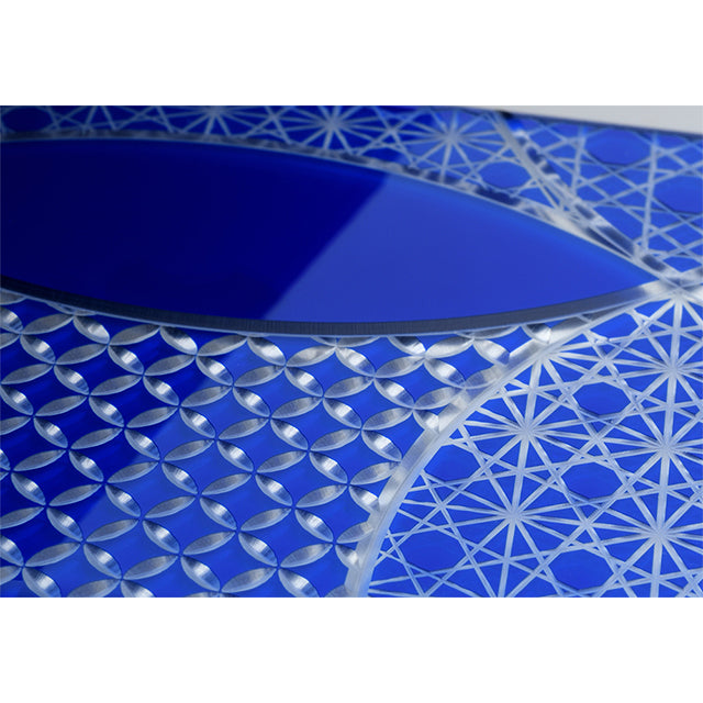 透明なガラスに着色ガラスを被せた上から巧みに施されたカットにより、繊細な文様が美しい輝きをもって描かれる伝統技法です。